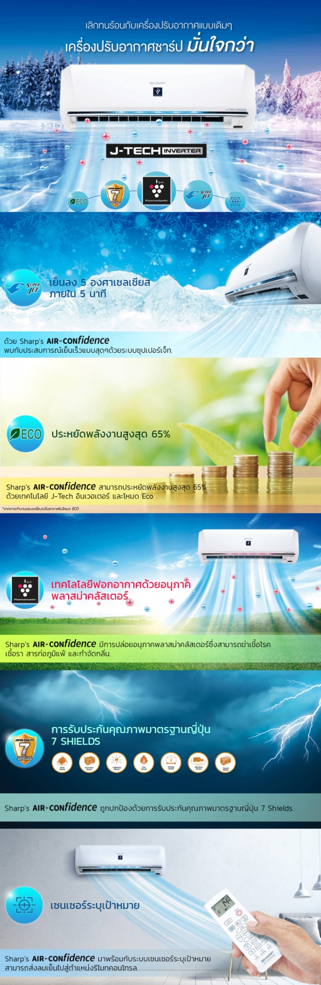 แบบติดผนัง รุ่น PLASMACLUSTER INVERTER รีโมทไร้สาย ประหยัดไฟ เบอร์ 5 |